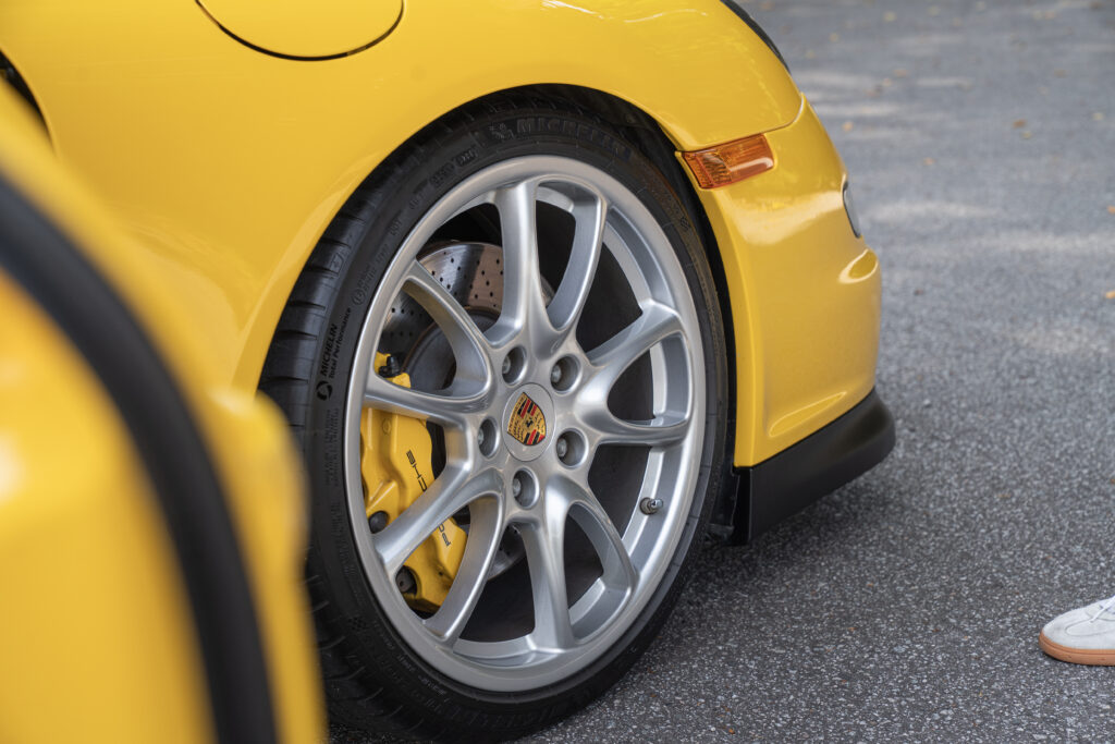 The stance. I’ve set it up just right. The GT2 wheels look almost identical to the GT3 stock wheels, but the rears have more offset and width, giving the car a properly planted look. On the narrower-bodied GT3, it fills the arches perfectly and gives the whole car a mean, purposeful squat.