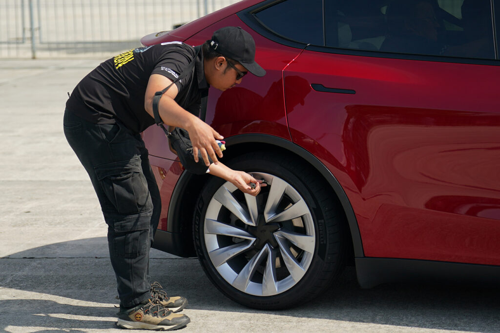 Pirelli also offered a practical demonstration of RunForward™ technology on a fleet of Tesla models. We drove on a small circuit first with fully inflated tyres, then repeated with one rear tyre deflated to below 10 PSI. The cars performed as if nothing had changed. This confirmed that RunForward™ provides not just theoretical safety but tangible, real-world reliability in a puncture scenario—a feature that delivers peace of mind for both daily drivers and high-performance EV owners.